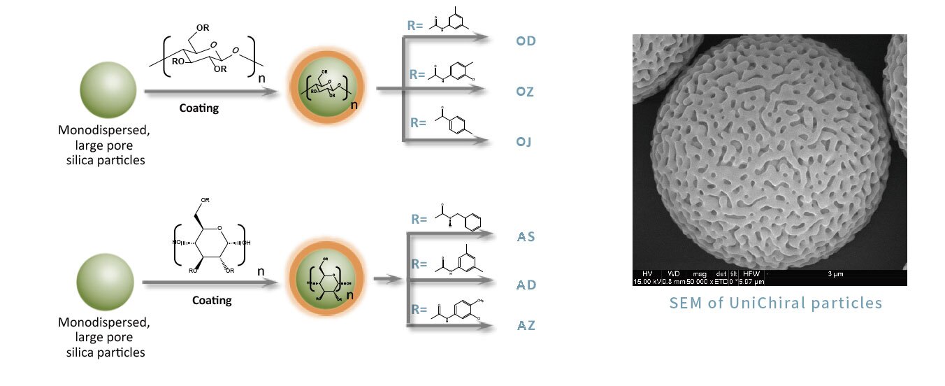 Zu den chiralen Säulen gehören die Serien OD, OJ, OZ, AD, AS und AZ. 5um-Säulen sind für die Analyse, 10um-Säulen sind für die Vorbereitung. OD- und AD-Säulen werden am häufigsten für die HPLC-Analyse, die Semipräparation und die SFC von chiralen Verbindungen verwendet.