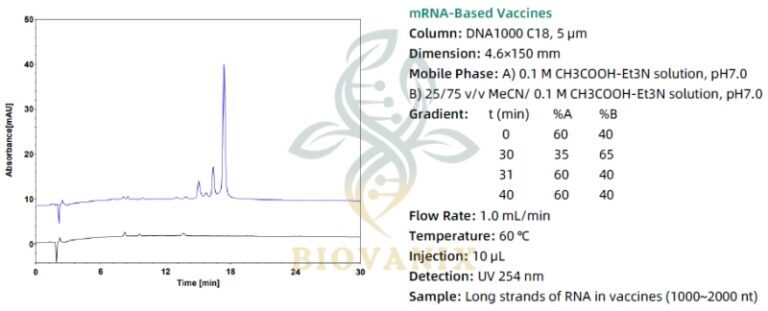By liquid chromatography, DNA analysis columns are designed for high-resolution separation of oligonucleotides, including mRNAs, plasmids and short oligos. These columns are based on advanced mono-dispersed particle technology and specially designed column chemistry, resulting in high resolution, ideal selectivity, good stability and decent consistency. DNA column offering consists of three separation modes: RP, SAX, and SEC, providing a complete toolset and application coverage abroad for oligonucleotide separation in biotech, biopharmaceutical, and academic research.