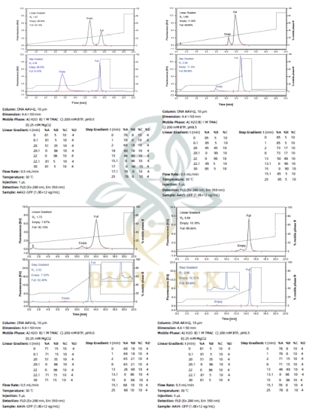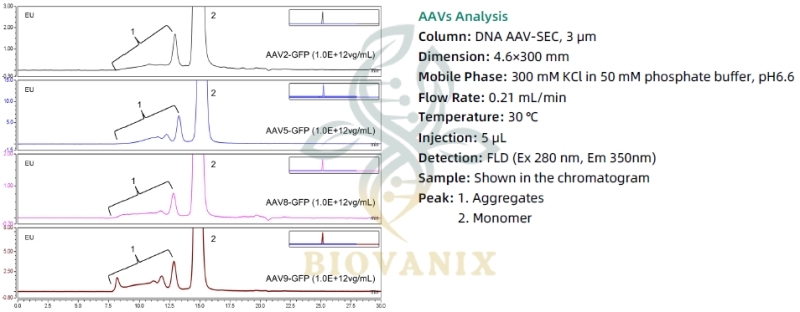 - DNA AAV-SEC is designed for aggregates analysis of AAVs in different serotypes.