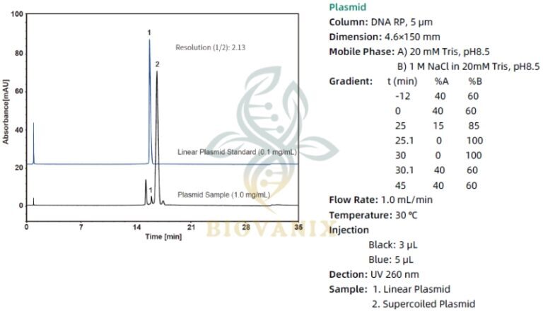 - DNA RP column is based on macroporous PS/DVB microspheres with high crosslinking degrees, and they are suitable for analyzing plasmid topology content.